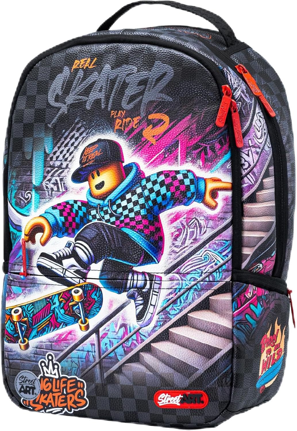 ★Perfect for college, this backpack features a discreet hidden pocket on the lower right back—ideal for keeping your wallet, phone, and other valuables secure and out of sight.★Sleek computer backpack featuring three spacious zippered compartments and a dedicated laptop sleeve. Designed to fit laptops up to 15.6 inches, within a 17.5-inch frame★ backpack for Men and Women in Designer theme. Measuring 17.5*12*6 inches,weight 0.8kg.★Versatile and multifunctional enough for Collage or the workplace, this designer backpack features bold, artistic graphics—making it a perfect gift for Christmas, birthdays, or Collage season.