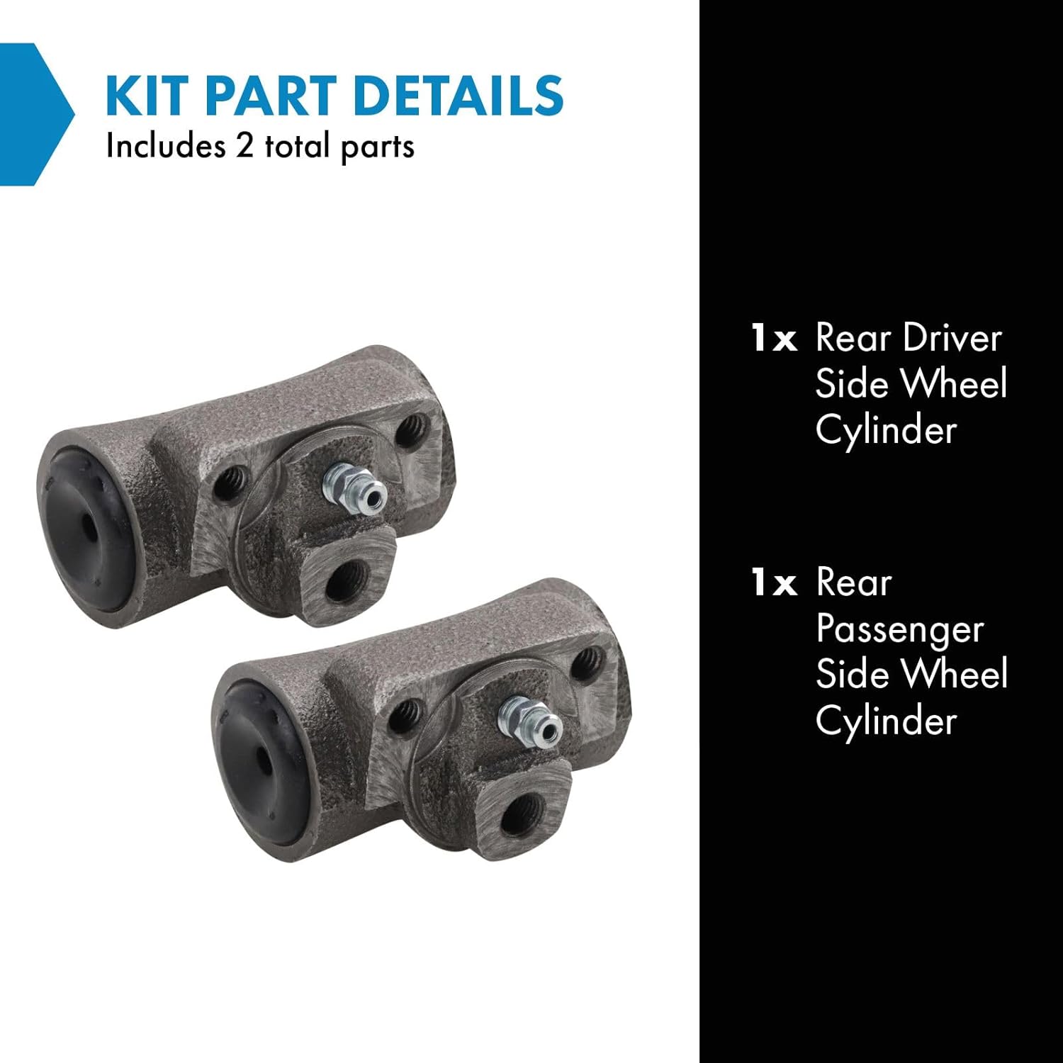 2 Piece Wheel Cylinder SetKit Includes(1) Rear Driver Side Wheel Cylinder(1) Rear Passenger Side Wheel CylinderFitmentScion xB 2004-06 - Rear Driver & Passenger SideToyota Celica 2003-05 - Rear Driver & Passenger SideToyota Corolla 2003-08 - Rear Driver & Passenger SideToyota Prius 2003-09 - Rear Driver & Passenger SideToyota Yaris 2007-17 - Rear Driver & Passenger SideProduct AttributesQuantity: 2 PieceReference NumbersW610155W610156